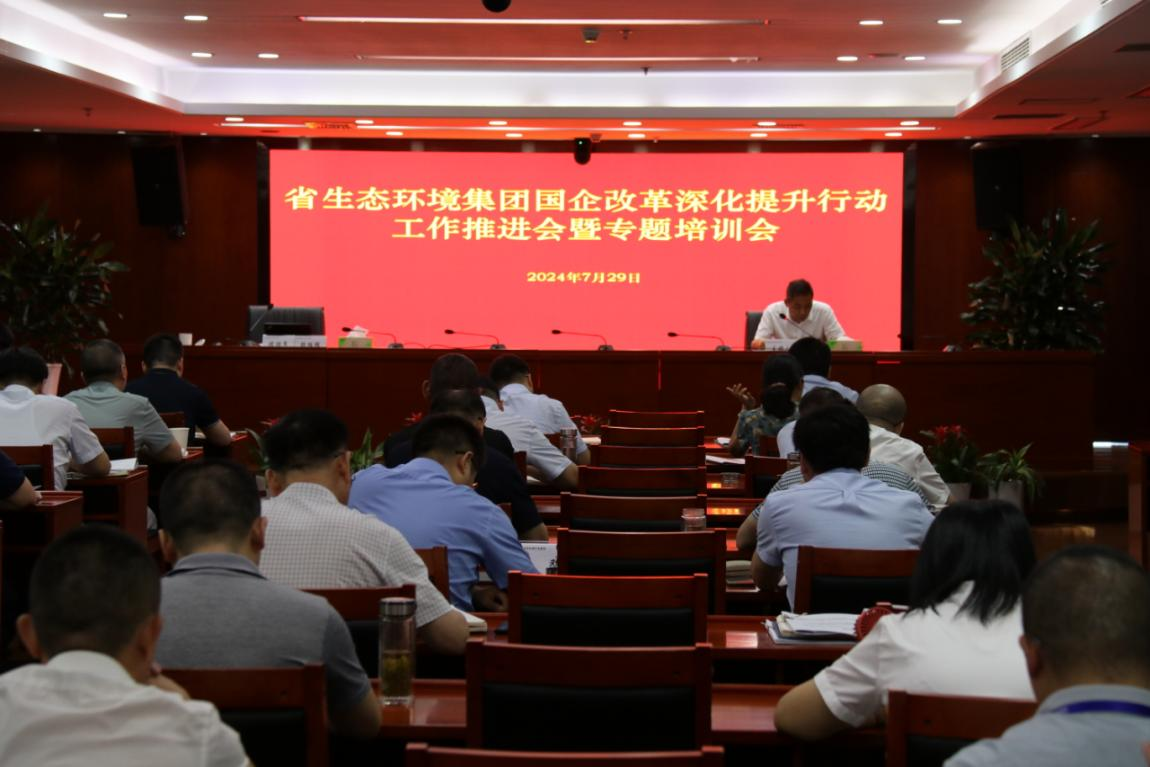 7月29日,省生態環境集團召開國企改革深化提升行動工作推進會暨專題培訓會議,傳達學習二十屆三中全會關于全面深化改革,特別是進一步深化國資國企改革相關精神,研究部署貫徹落實工作。集團黨委書記、董事長羅太忠出席會議,集團黨委委員、副總經理李明主持會議,集團領導班子其他成員,各直屬(控股)公司主要負責人及分管負責人,集團本部中層管理人員和相關工作人員參加會議。