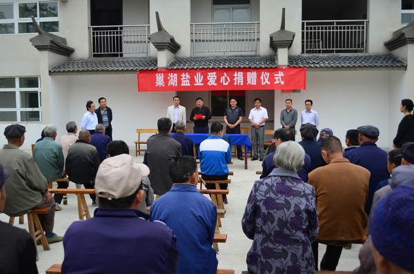 5月17日,巢湖市鹽務局開展愛心捐贈敬老院活動,讓全市29所敬老院近3000名五保老人吃上“愛心鹽”。據悉,按照每人每天6克的標準,巢湖市鹽務局免費為敬老院老人提供一個月的低鈉鹽,提倡“少吃鹽、吃好鹽、吃低鈉鹽”的健康理念。