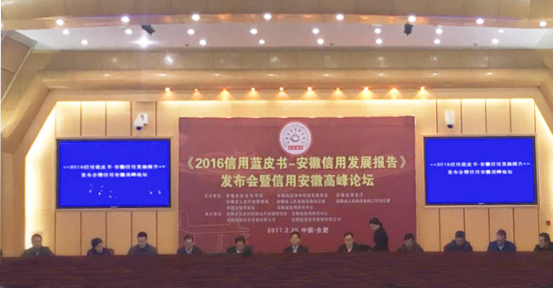 2017年2月25日,由安徽省社會科學院、安徽省經(jīng)濟和信息化委員會、安徽省商務廳、安徽省工商行政管理局、安徽省人民政府法制辦公室、安徽省人民政府金融工作辦公室、安徽省信用協(xié)會和安徽省信用研究中心聯(lián)合舉辦的《2016信用藍皮書——安徽信用發(fā)展報告》發(fā)布暨信用安徽高峰論壇在省人大會議中心召開。