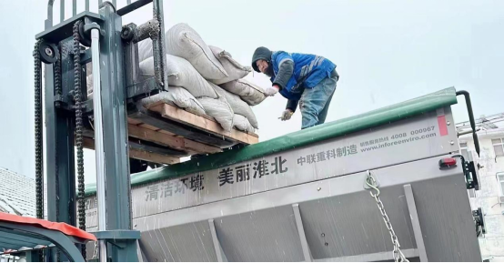 合肥鹽業公司全體職工全員上崗,開展融雪鹽配送工作。