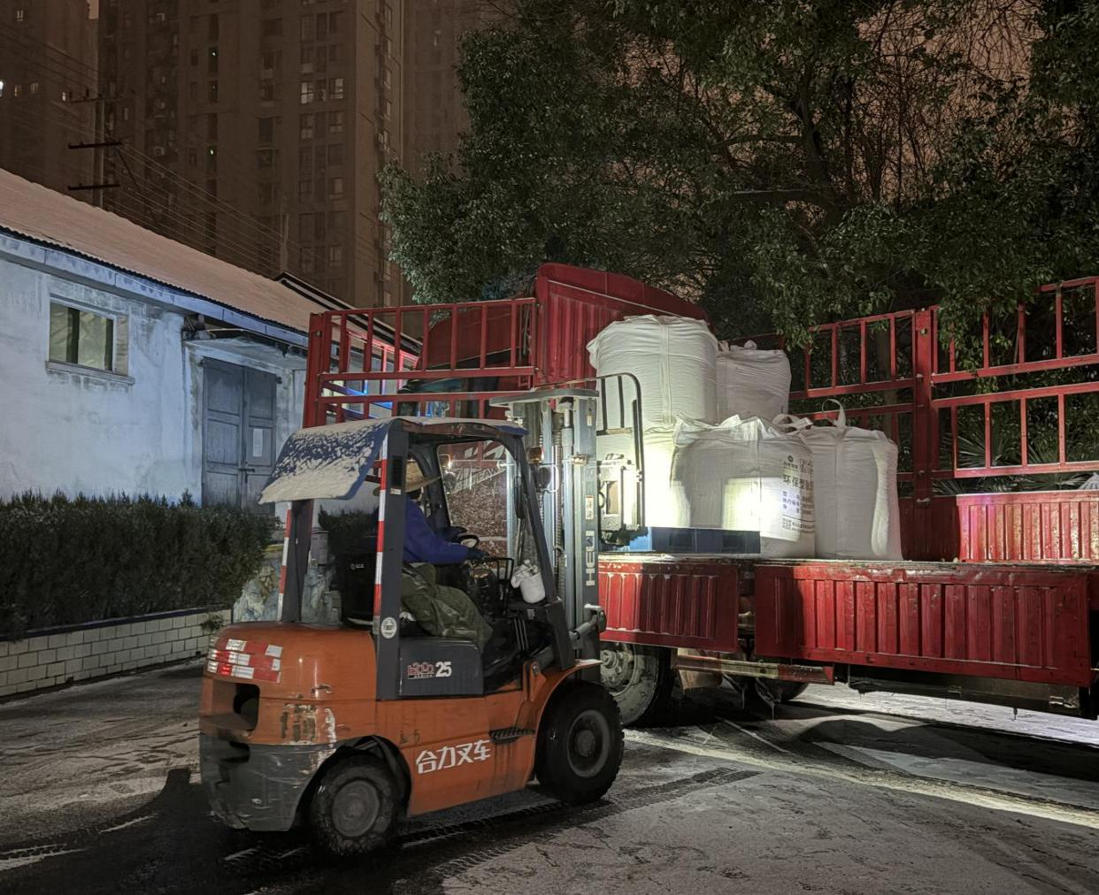 作為應(yīng)急物資保障的重要力量,合肥鹽業(yè)及所屬縣(市)公司第一時(shí)間成立應(yīng)急保供小組,嚴(yán)格執(zhí)行24小時(shí)值班和領(lǐng)導(dǎo)帶班制度,實(shí)時(shí)與相關(guān)部門協(xié)調(diào)聯(lián)系,跟蹤天氣變化與保供需求。一線員工克服低溫夜間作業(yè)困難,高效完成融雪劑轉(zhuǎn)載調(diào)運(yùn)。