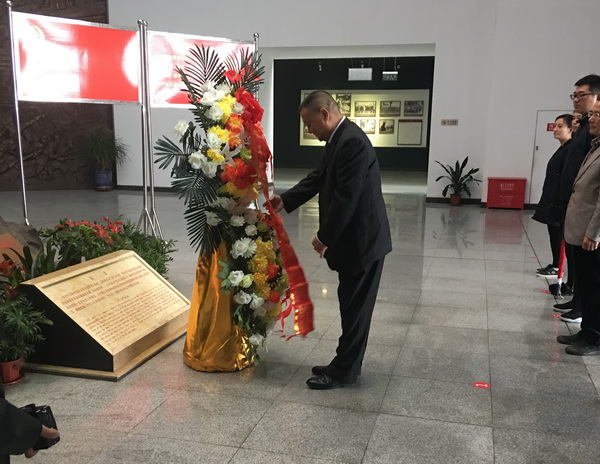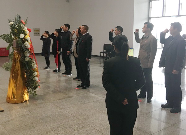 首先,全體黨員來到云嶺新四軍史料陳列館。在入口處,舉行了向革命先烈敬獻(xiàn)花籃儀式。深情的《獻(xiàn)花曲》中,支部書記王克山神情莊重,緩步上前,悉心整理花籃緞帶,全體黨員深深三鞠躬,表達(dá)了對革命先烈的深切緬懷和無限敬仰。接著,面對鮮紅的黨旗,在王克山領(lǐng)誓下,全體黨員舉起右拳,重溫了入黨誓詞。錚錚誓言久久回蕩,表達(dá)了全體黨員“不忘初心、牢記使命”的堅(jiān)定政治信念。